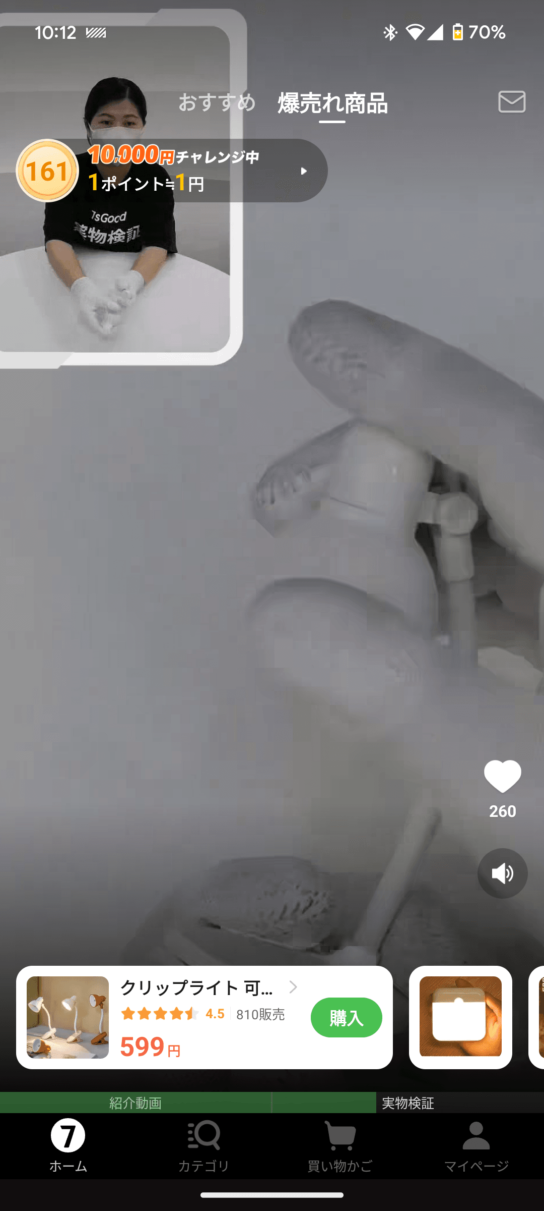 見える品質と称して、さまざまな取り組みをしているのも特徴です。一部の商品のショート動画の後には、実物検証という動画が再生されます。これは、派手なエフェクトなどを排して、商品の機能や細部を淡々と見せる動画です。期待通りの商品が届くのか確認することができます。