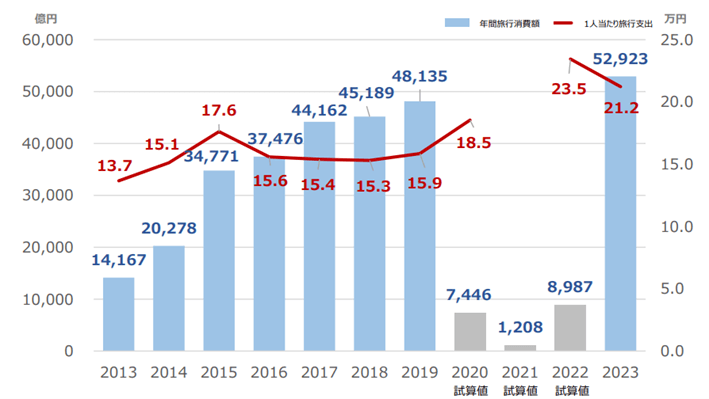 ・国土交通省観光庁, 訪日外国人消費動向調査, https://www.mlit.go.jp/kankocho/siryou/toukei/content/001718104.pdf(参照:2024-02-11)