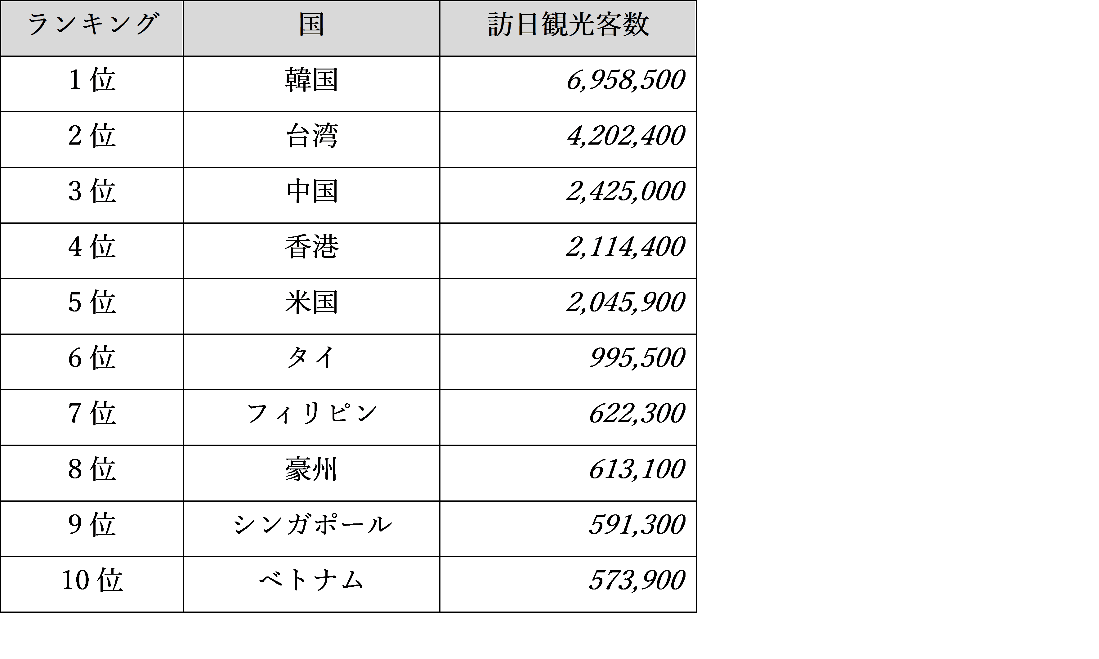 国別の訪日観光客数ランキング