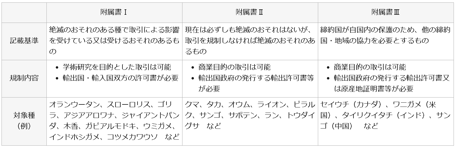 (参考) 付属書リストの確認(動物) https://www.meti.go.jp/policy/external_economy/trade_control/02_exandim/06_washington/download/20231125_appendix_fauna.pdf