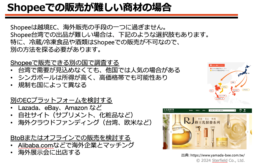 私のワークショップでは現地ECにアクセスして市場調査をするのですが、最初にやることは「自社の商品が出品されているか」を調査することです。 「自社商品が出ているわけないよ、出品していないからこのセミナーに来たんだ」と言われるセミナー参加者もいるのですが、実際に調べてみると、「あれ? 自社商品出てるね」ということがママあります。 特にお菓子などの商材で多いのですが、特に海外向けに卸したりしていなくても、現地の方が現地ECモールで転売をしているケースがあります。 このケースは、非常に有望です。メーカーの方は転売されている状況をネガティブに捉えることもあるのですが、「転売されるほど認知と人気がある」というポジティブに捉えるほうが吉です。