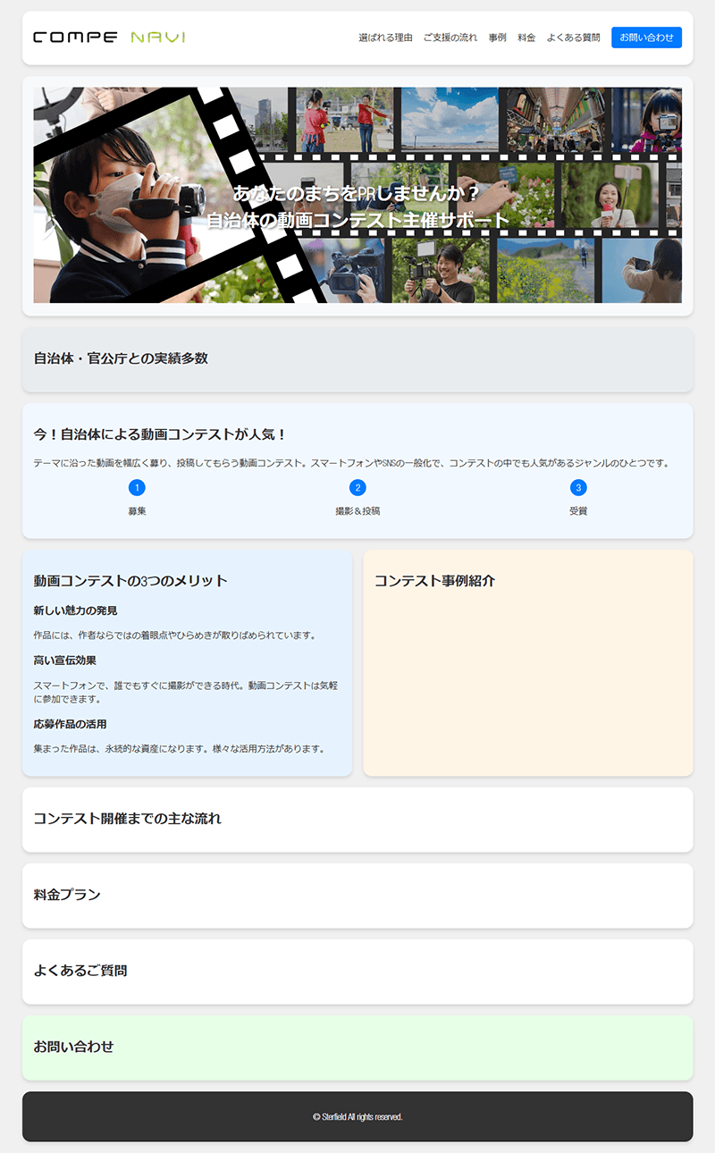 コンペナビLP:自治体向け動画コンテスト主催サポート