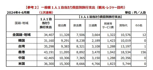 また下の図から台湾からお越しの観光・レジャー目的の一般客1人1泊あたりの旅行支出は約35,000円と大国アメリカからの旅行客の支出に匹敵する金額となっており、買物代ではアメリカ人の2倍以上の金額を消費している事が分かります。
